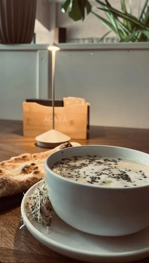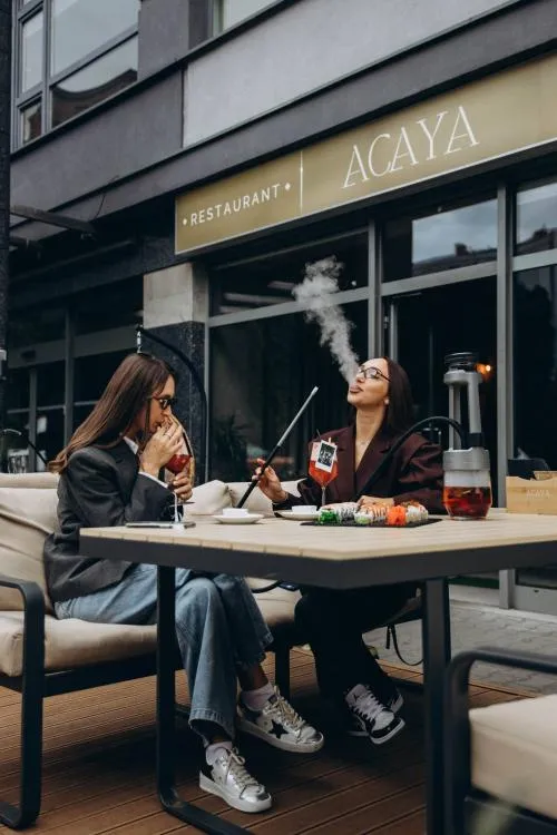 ACAYA to nie tylko kuchnia – to również wyjątkowy klimat. Przestronne wnętrza, przytulna strefa lounge, stylowy wystrój i dużo zieleni tworzą idealne miejsce na spotkanie z przyjaciółmi, romantyczną randkę czy chwilę relaksu po pracy.